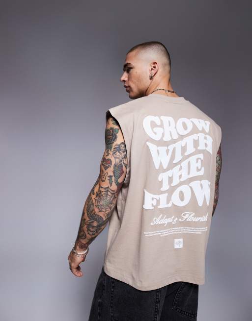 ASOS DESIGN - Oversized tanktop met grafische tekstprint in beige