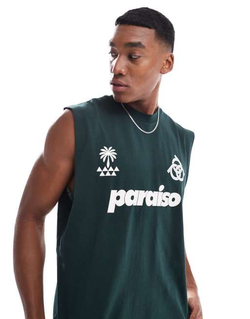 ASOS DESIGN - Oversized tanktop met Paraiso-print op de voorkant in groen