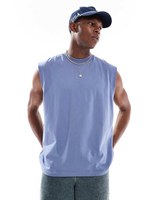 ASOS DESIGN - Oversized tanktop van zware stof in blauw