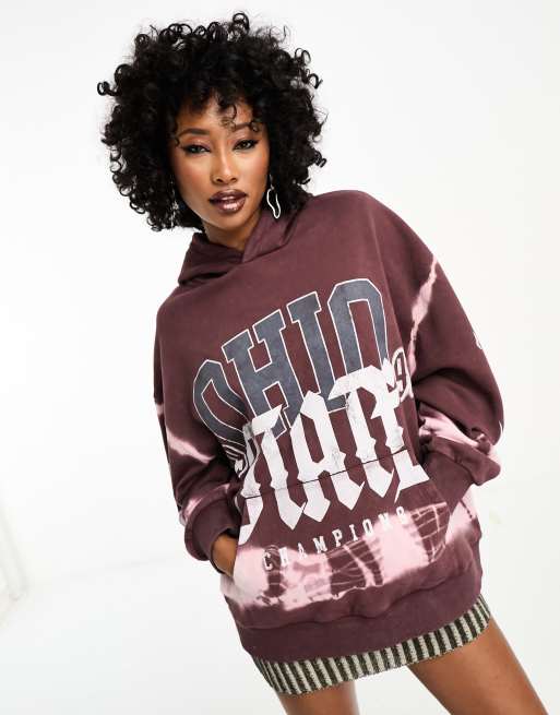ASOS DESIGN - Oversized tie-dye hoodie met Ohio-print in bordeauxrood