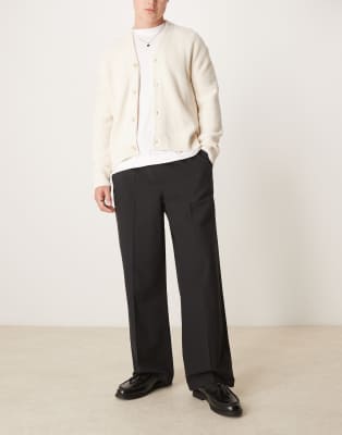 ASOS DESIGN - Oversized toelopende broek van katoen en linnen in zwart