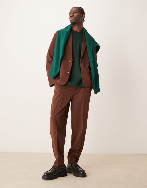 ASOS DESIGN - Oversized toelopende pantalon van keperstof in bruin