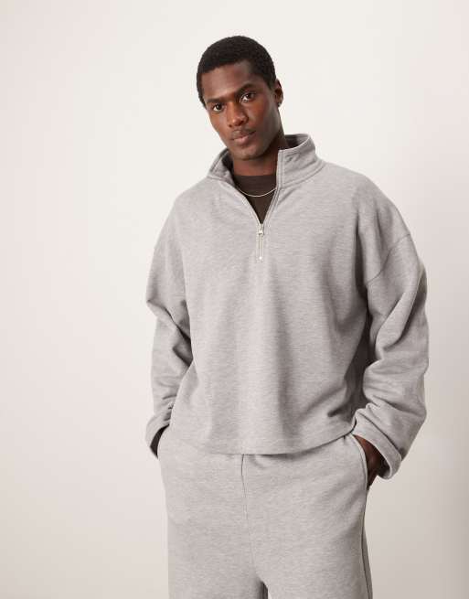 ASOS DESIGN - Oversized trui met opstaande boord met rits in gemêleerd grijs