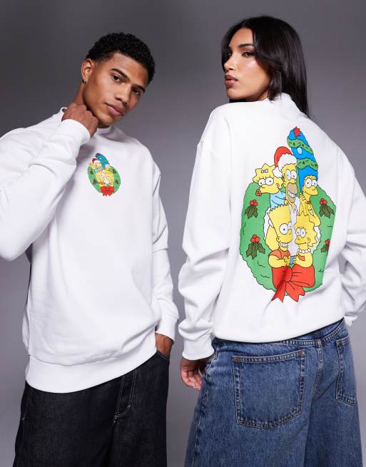 ASOS DESIGN - Oversized uniseks kerstsweatshirt met The Simpsons-prints in wit