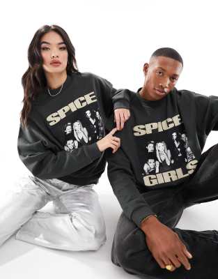 ASOS DESIGN - Oversized uniseks sweatshirt met gelicenseerde grafische Spice Girls-prints in antraciet