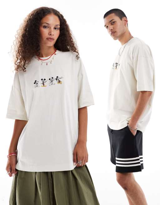 ASOS DESIGN - Oversized uniseks T-shirt met Disney Mickey Mouse-prints in gebroken wit