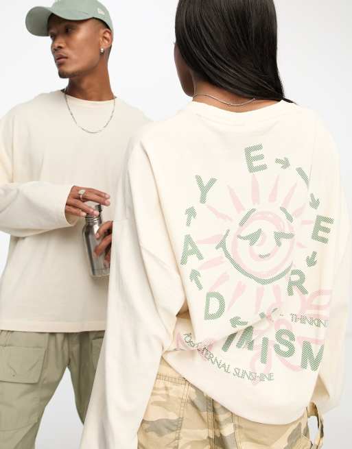 ASOS DESIGN - Oversized uniseks T-shirt van ongebleekt katoen met lange mouwen en grote print op de rug