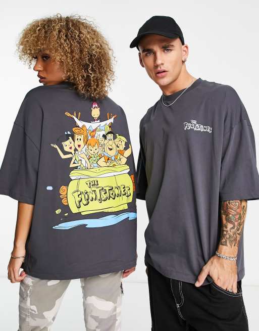 ASOS DESIGN - Oversized unisex T-shirt met Flintstones print in antraciet