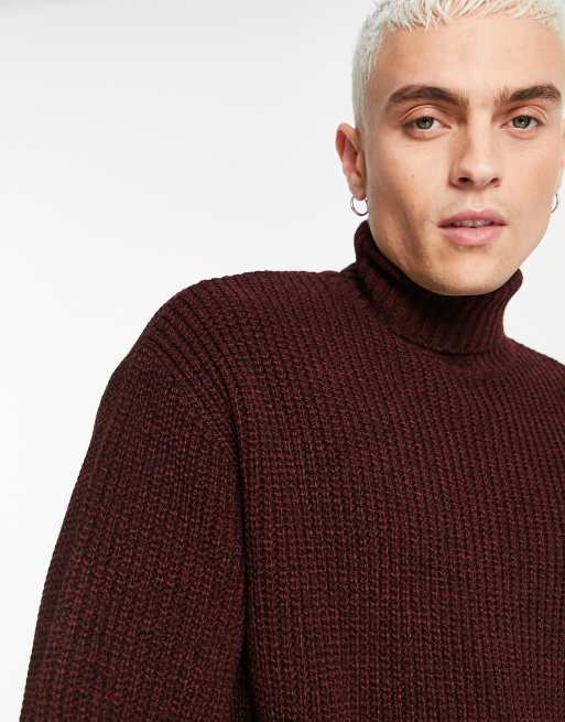 ASOS DESIGN - Oversized visserstrui met geribbelde col in gemêleerd rood