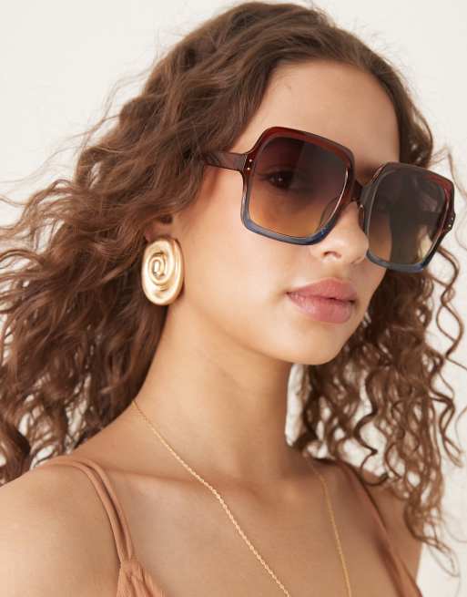 ASOS DESIGN - Oversized zonnebril in jaren 70-stijl in vervaagd bruin blauw