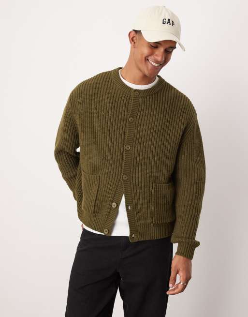 ASOS DESIGN - Oversized zwaar gebreid vest van wolmix met ronde hals in kaki