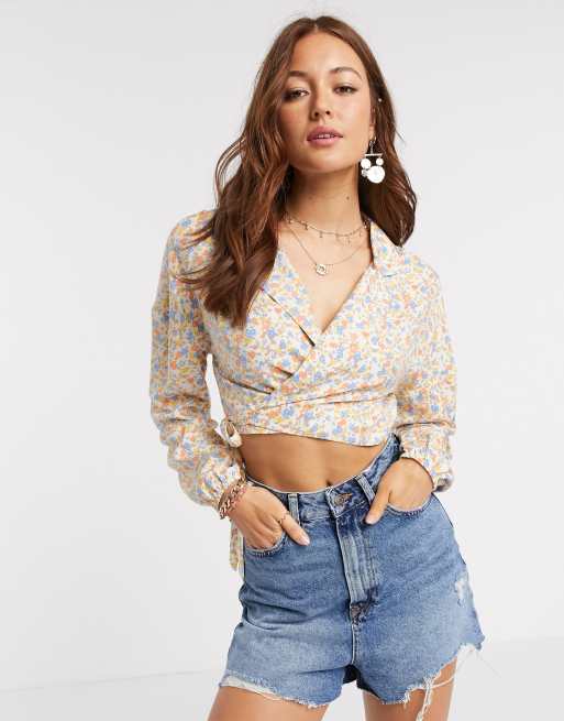 ASOS DESIGN - Overslagtop met lange mouwen en fijne bloemenprint