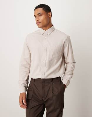 ASOS DESIGN - Oxford regular overhemd in stone