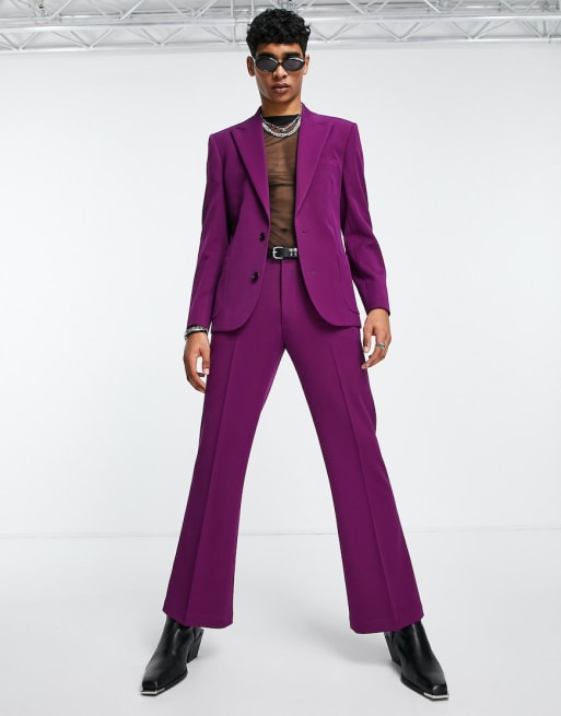 ASOS DESIGN - Pak met revers in jaren 70-stijl in aubergine