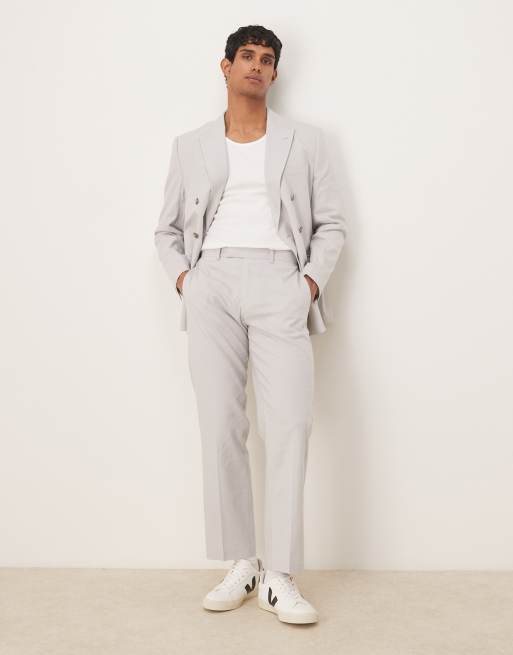 ASOS DESIGN - Pantalon met rechte pijpen van linnenmix in grijswit