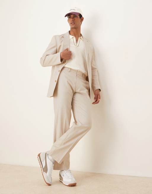 ASOS DESIGN - Pantalon van katoenen en linnen keperstof met rechte pijpen in stone