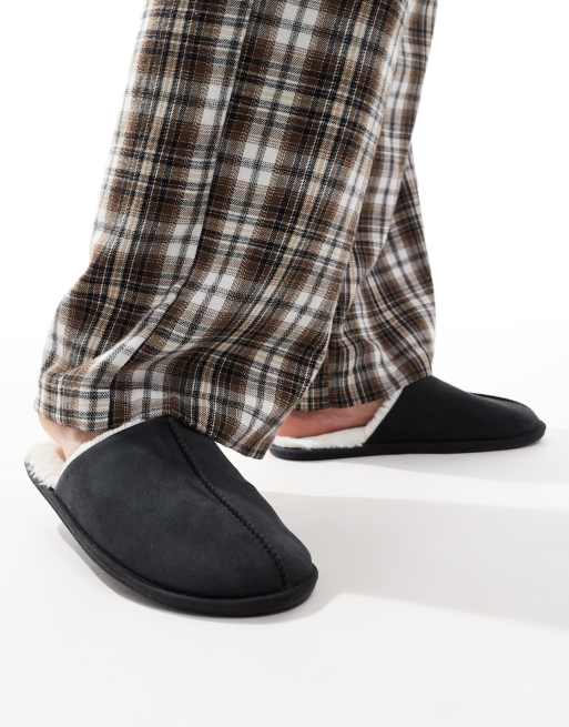 ASOS DESIGN - Pantoffels in zwart met imitatiebont voering