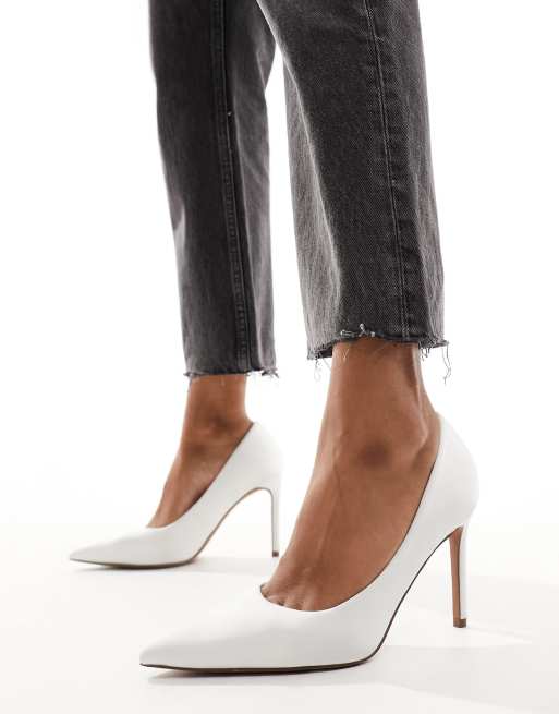 ASOS DESIGN - Paphos - Puntige pumps van satijn met hoge hak in ivoorwit