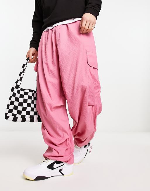 ASOS DESIGN - Parachute-cargobroek in roze