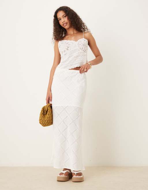 - Broderie anglaise: lichtgewicht stof met een geborduurd, uitgesneden patroon