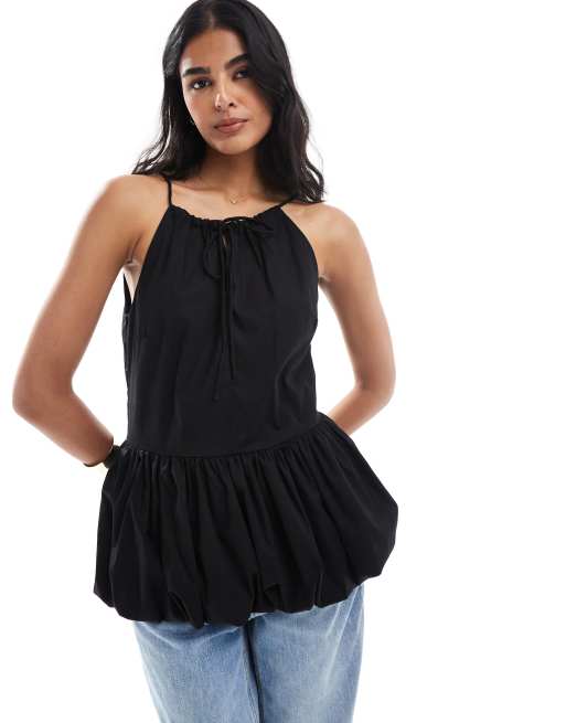 ASOS DESIGN - Peplum top van katoen met pofmouwen in bordeauxrood