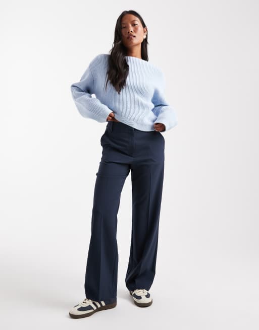 ASOS DESIGN Petite - Elegante broek met smalle, rechte pijpen in marineblauw