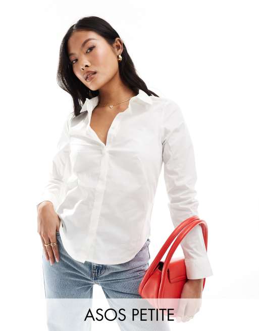 ASOS DESIGN Petite - Getailleerd overhemd met lange mouwen in wit