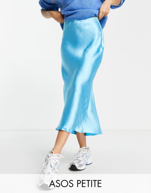 ASOS DESIGN Petite - Midi-sliprok van hoogglans satijn in blauw