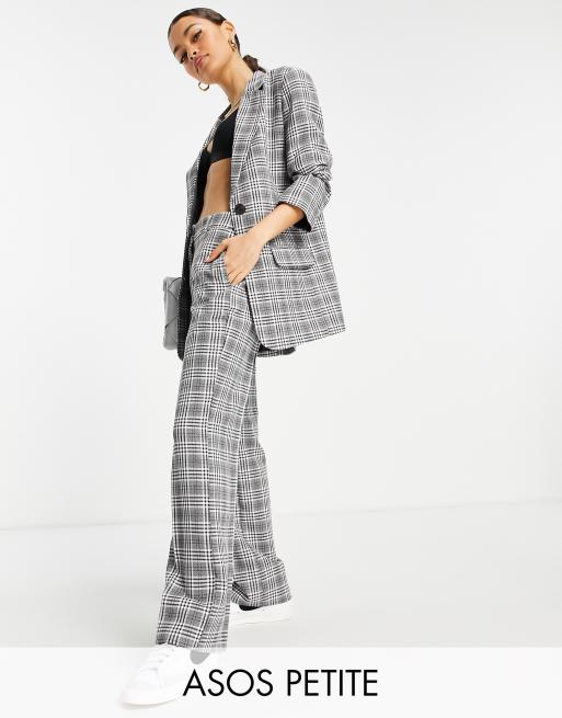 ASOS DESIGN Petite - Mix en match - Geruite pantalon met rechte pijpen in grijs