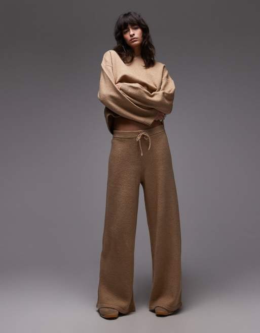 ASOS DESIGN - Pluizige gebreide broek met wijde pijpen in mokka, deel van co-ord set