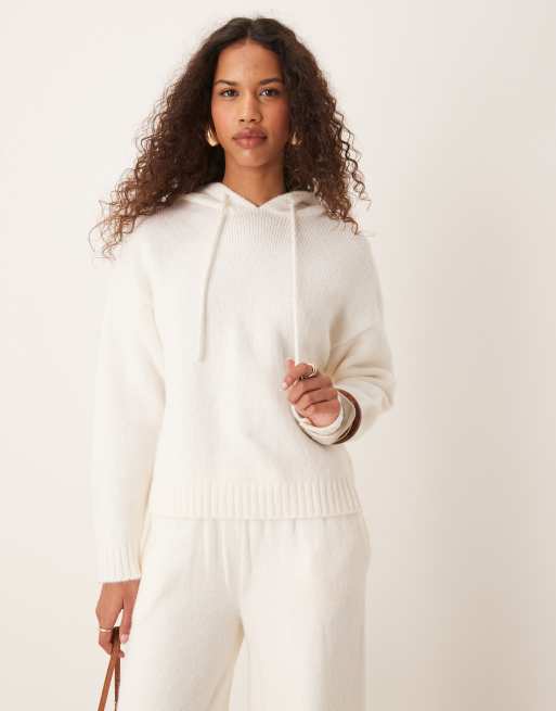 ASOS DESIGN - Pluizige gebreide hoodie in ecru, deel van co-ord set