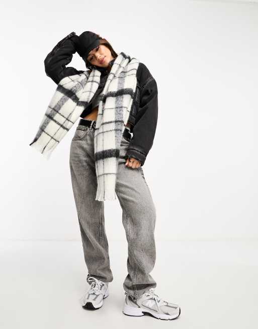 ASOS DESIGN - Pluizige geruite sjaal in zwart-wit