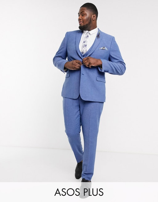 ASOS DESIGN - Plus - Bruiloft - Superskinny kostuum met visgraatmotief in blauw