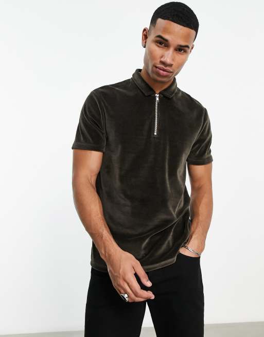 ASOS DESIGN - Poloshirt in bruin mat velours