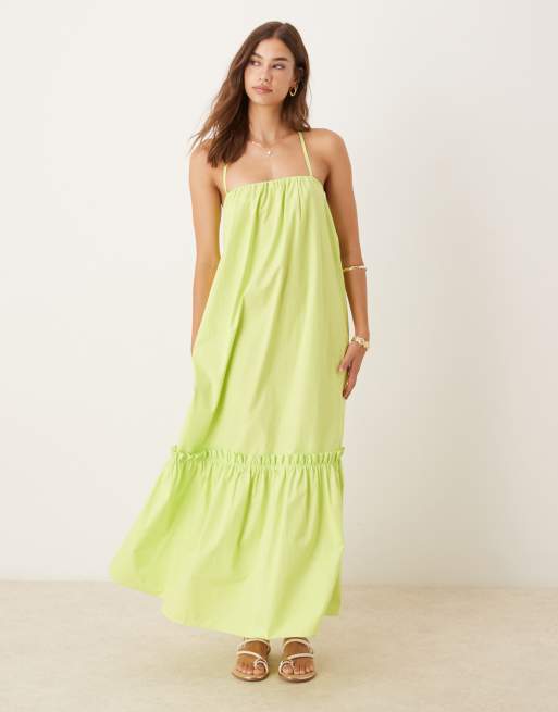 ASOS DESIGN - Popeline maxi jurk met A-lijn, cami bandjes en gekruiste achterkant in limoengroen