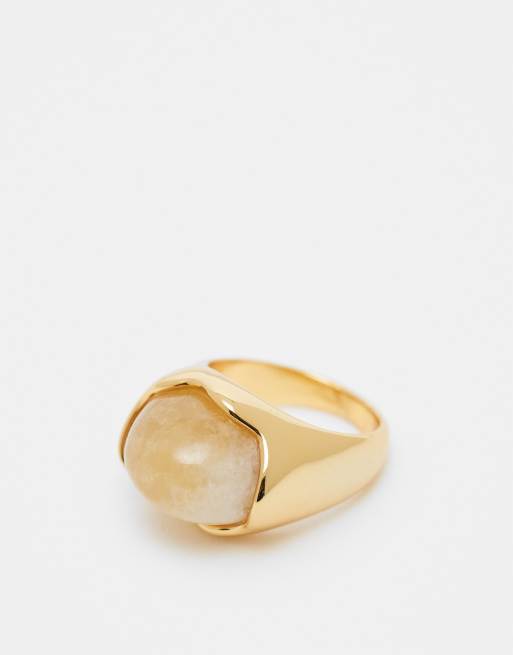 ASOS DESIGN - Premium - 14kt vergulde ring met halfedelsteen amber