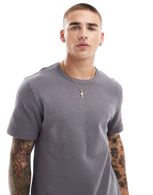 ASOS DESIGN - Premium interlock T-shirt met ronde hals van 300 g/m² zware stof in antraciet