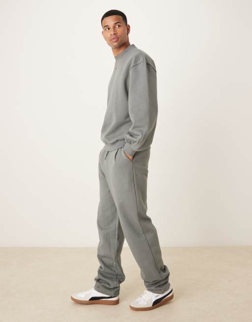 ASOS DESIGN - Premium joggingbroek van zware stof met wijde pijpen, ingenomen zoom en plooien in groen