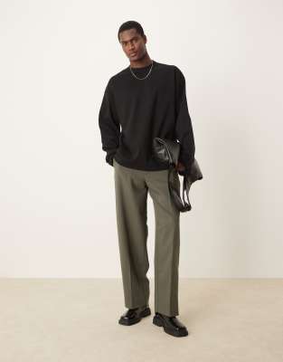 ASOS DESIGN - Premium - Oversized T-shirt van interlock stof met lange mouwen in zwart