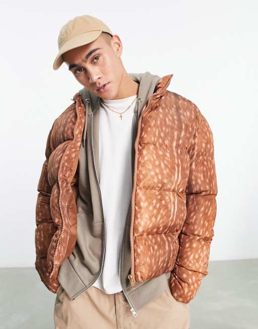 ASOS DESIGN - Pufferjack met dierenprint in kiezelkleur