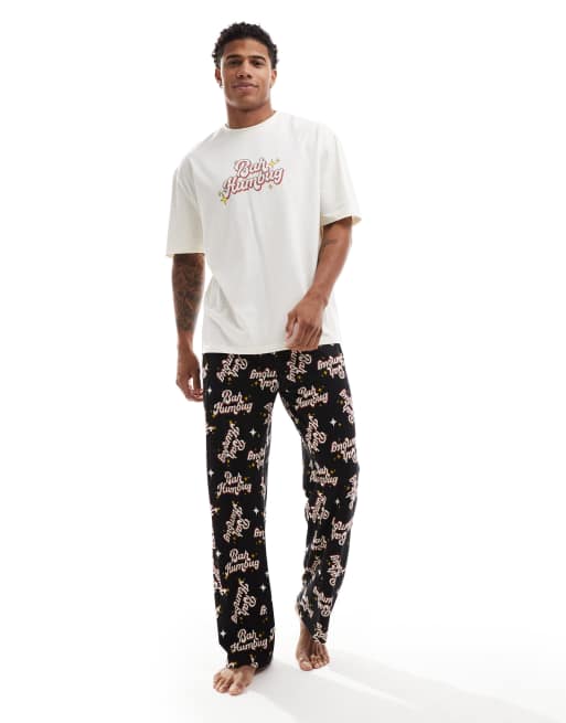 ASOS DESIGN - Pyjamaset met Bah Humbug-slogan in zwart