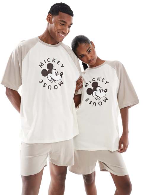 ASOS DESIGN - Pyjamaset met Disney Mickey Mouse-print in stone