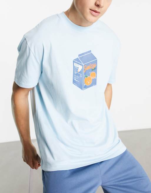 ASOS DESIGN - Pyjamaset met T-shirt en broek in blauw met oranje print
