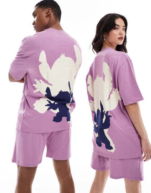 ASOS DESIGN - Pyjamaset van T-shirt en short met Stitch Disney-print in paars