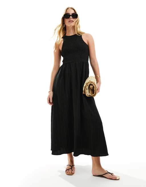 ASOS DESIGN - Racer midi-zonnejurk met kreukeleffect en lage rug in zwart