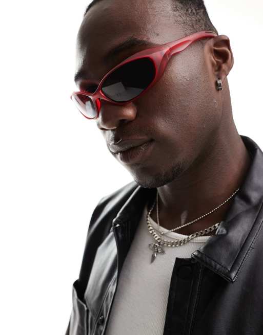 ASOS DESIGN - Racer-zonnebril in rood met zilveren spiegelglazen