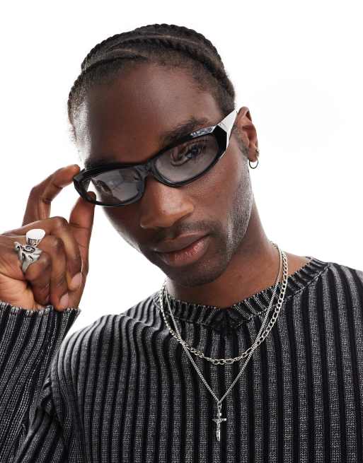 ASOS DESIGN - Racer-zonnebril met doorzichtige glazen in zwart