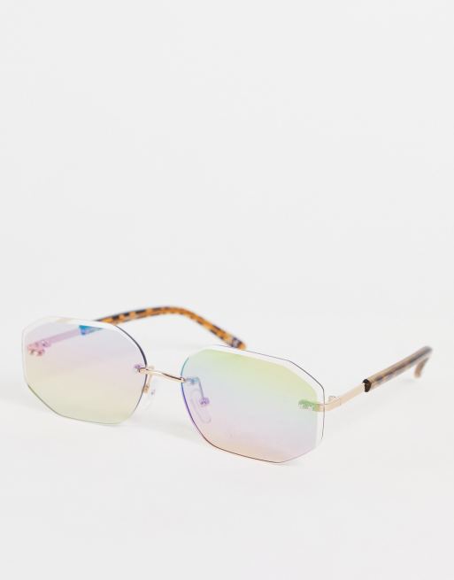 ASOS DESIGN - Randloze zeshoekige zonnebril in jaren 90-stijl in goud met gespiegelde glazen