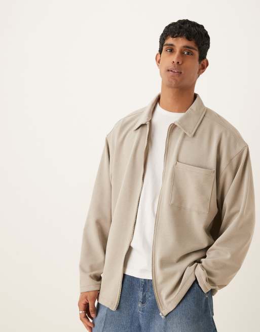 ASOS DESIGN - Recht coachjack in gestructureerde ecru streep