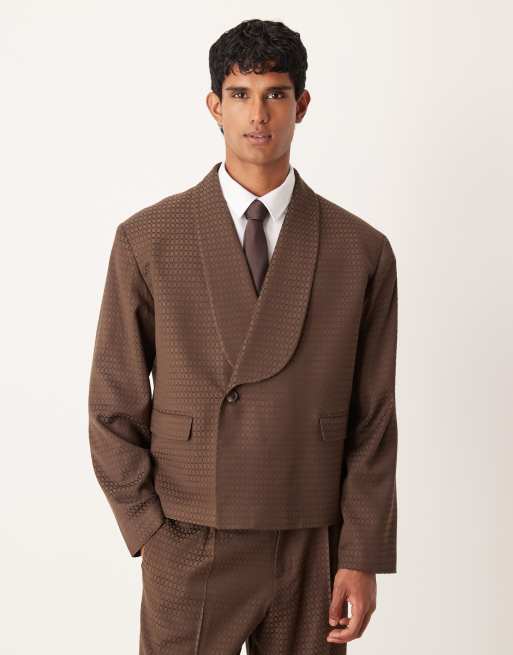 ASOS DESIGN - Recht colbert in bruin jacquard